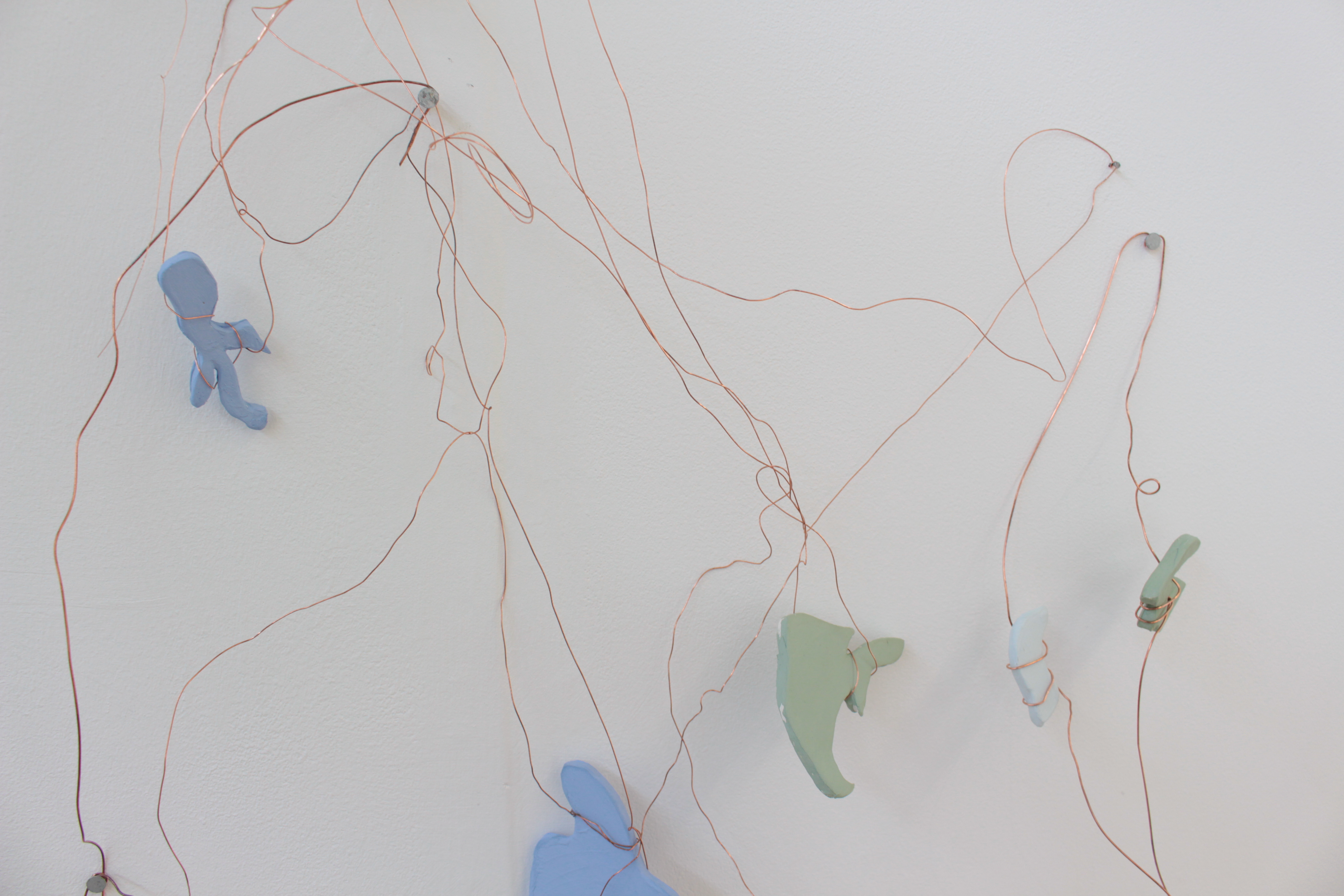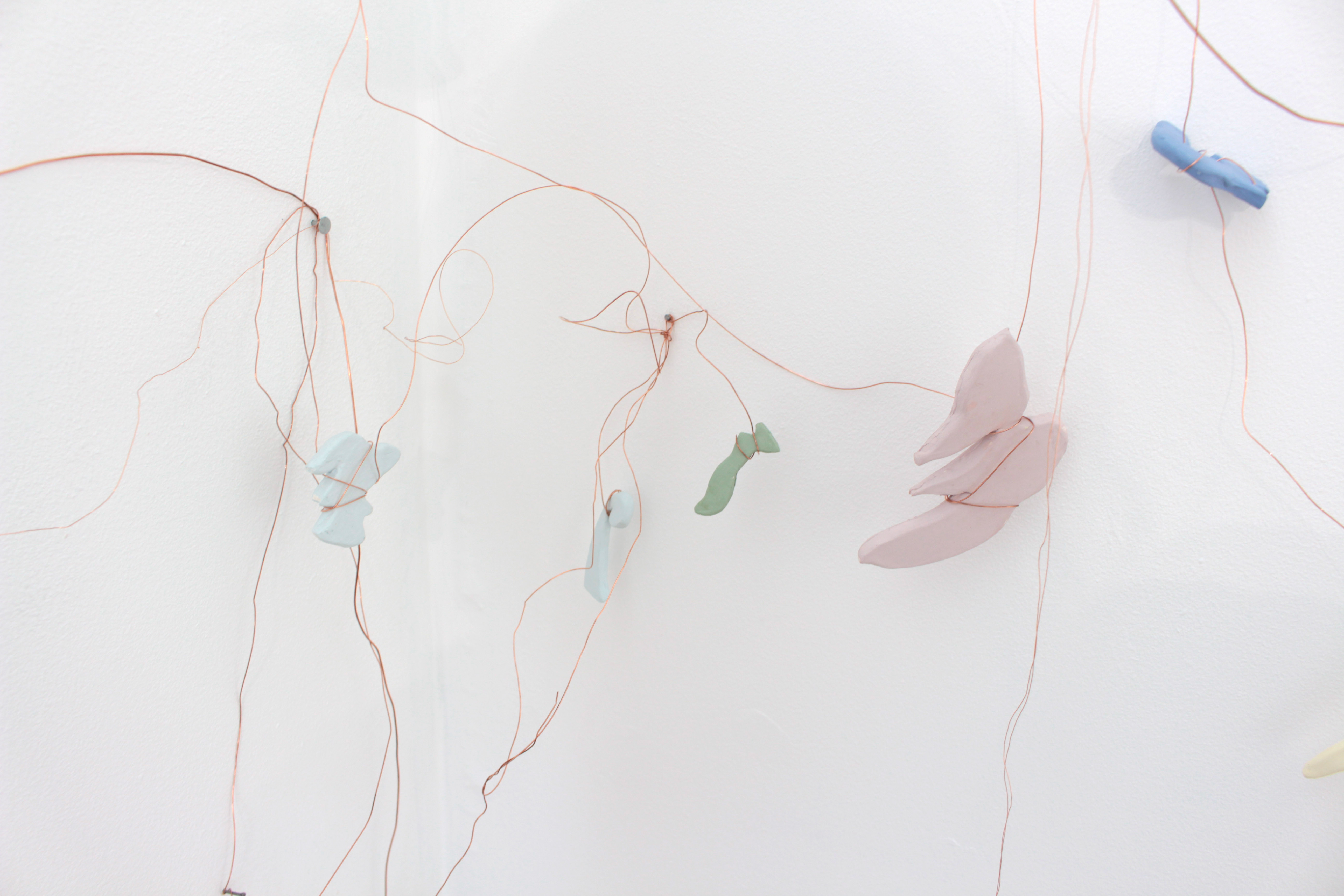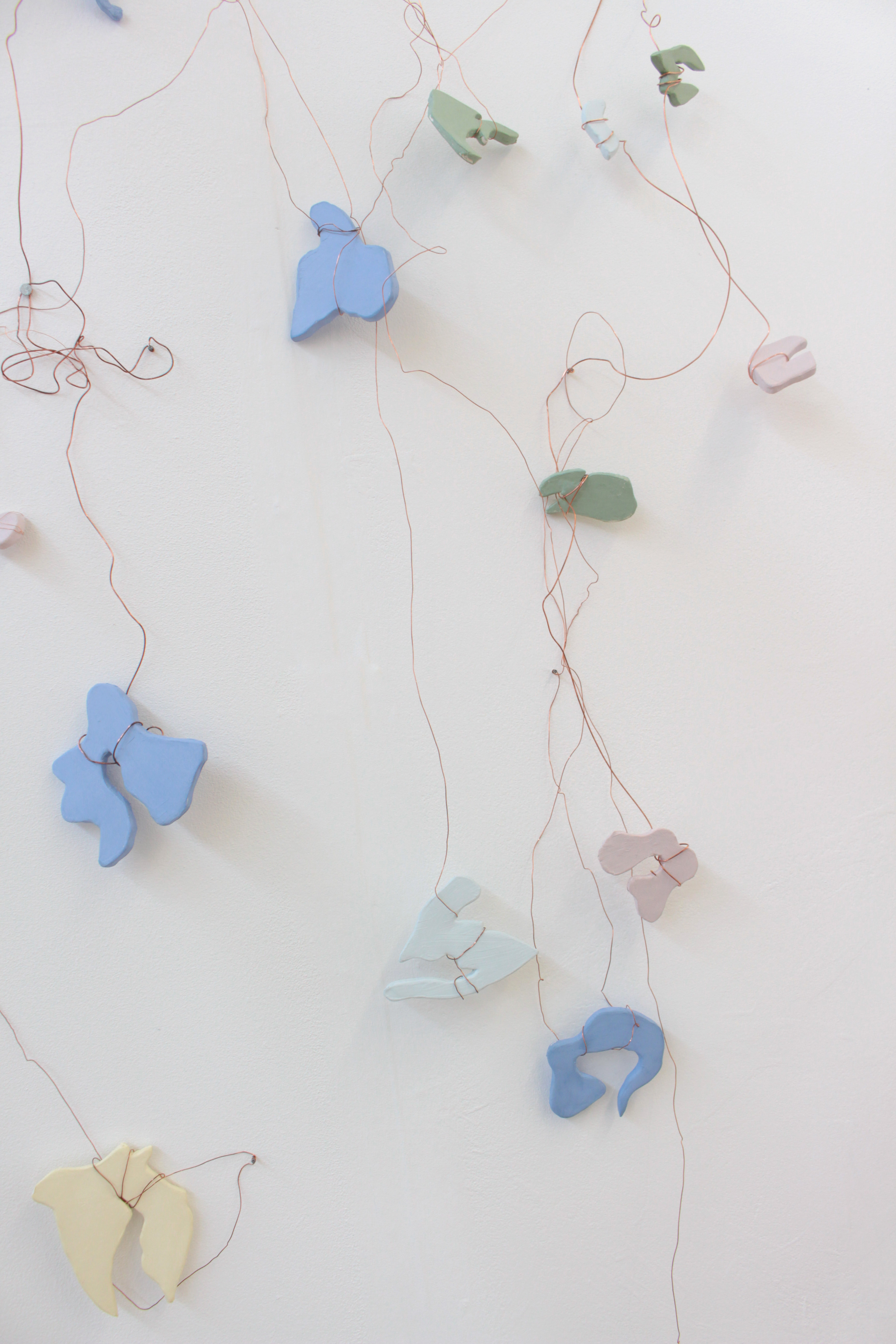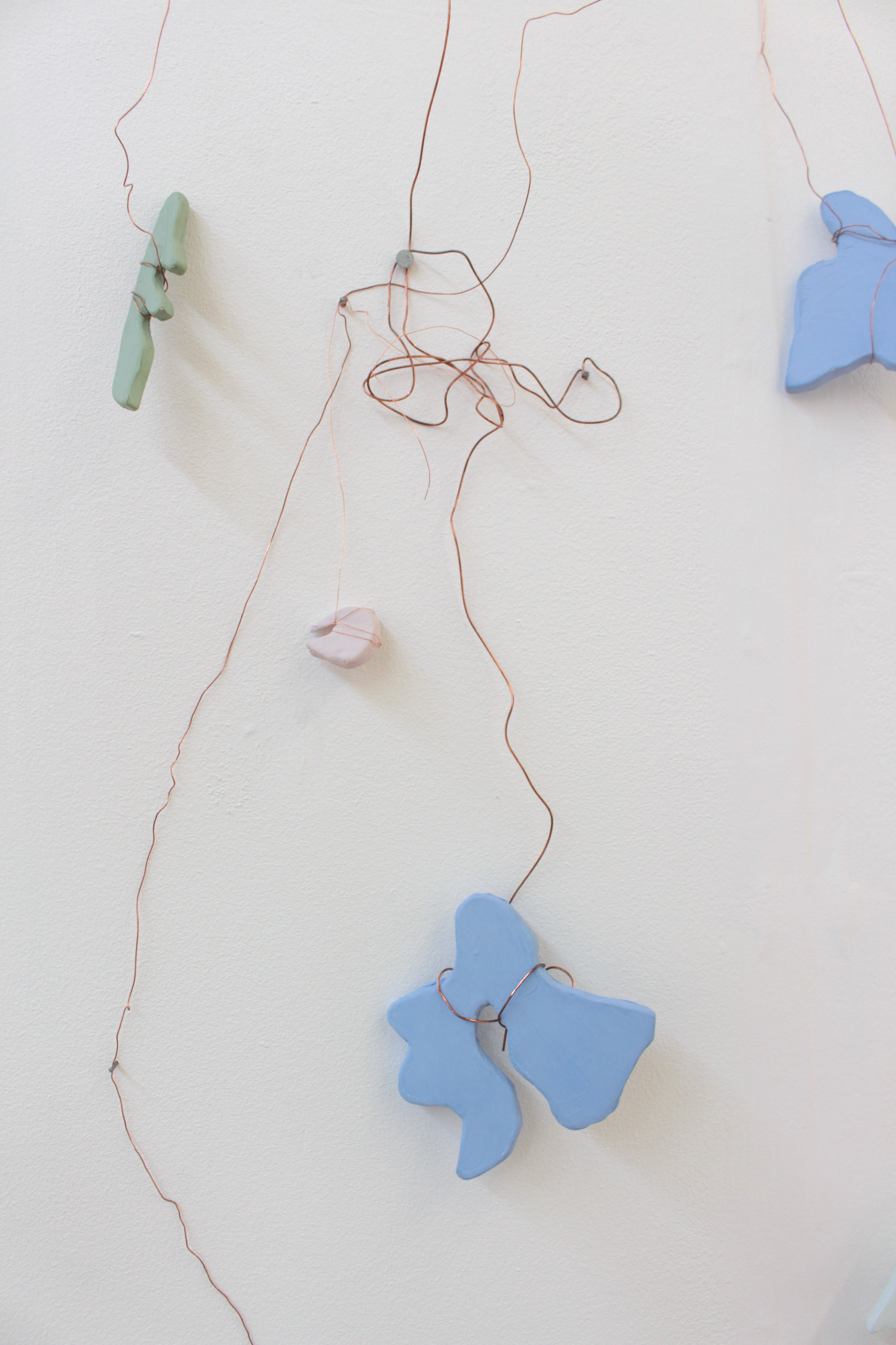 Wire and ceramic sculptural wall hanging: