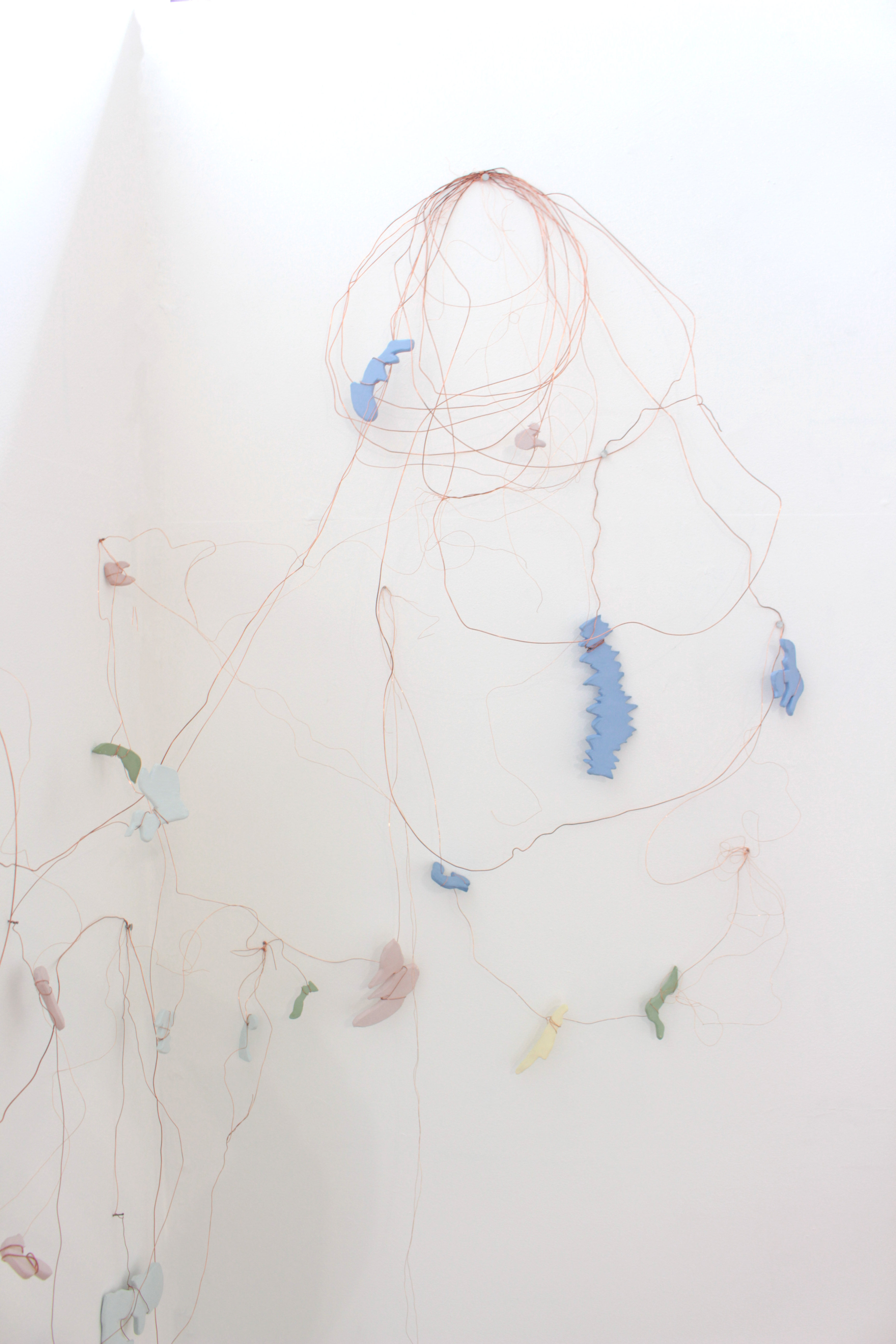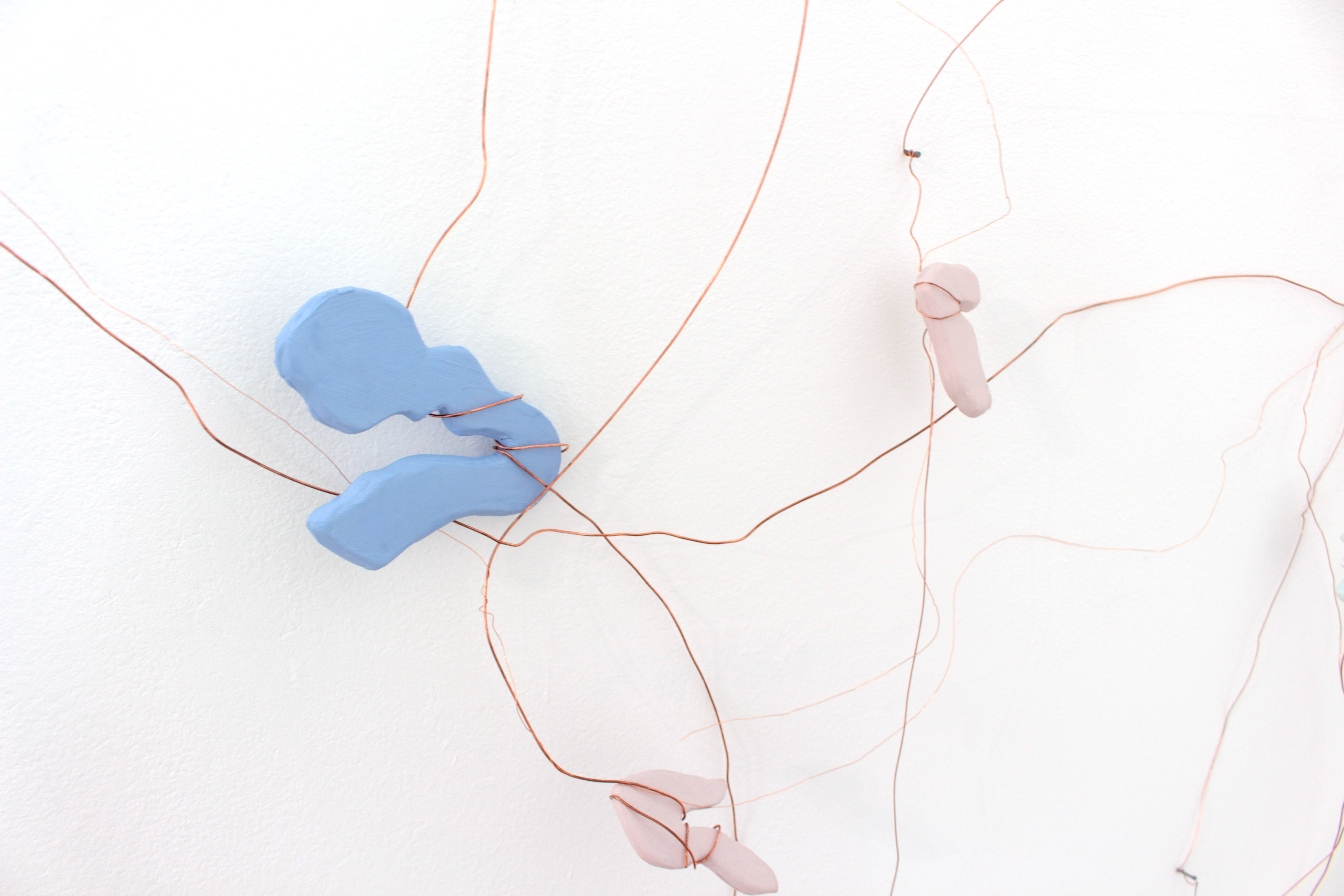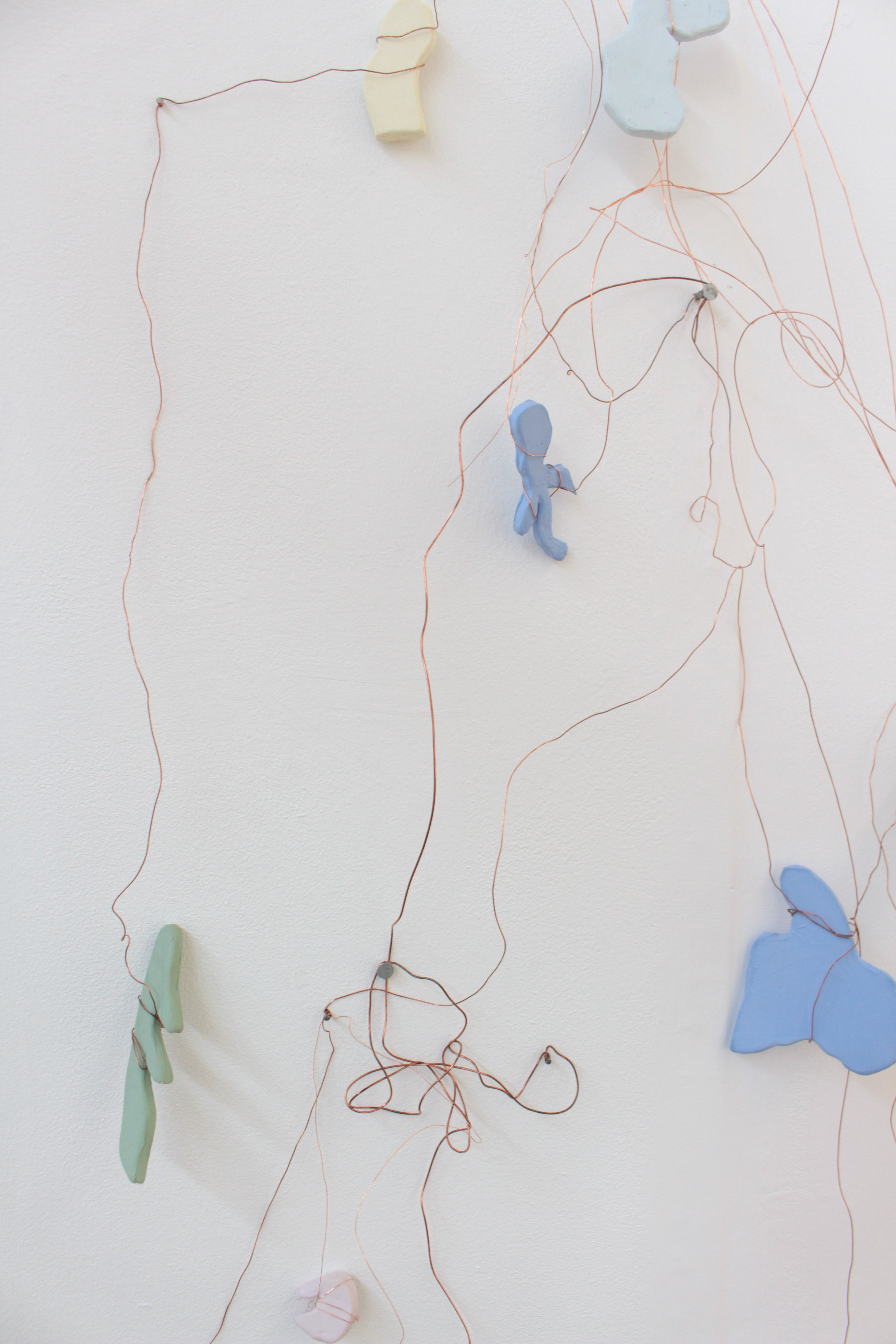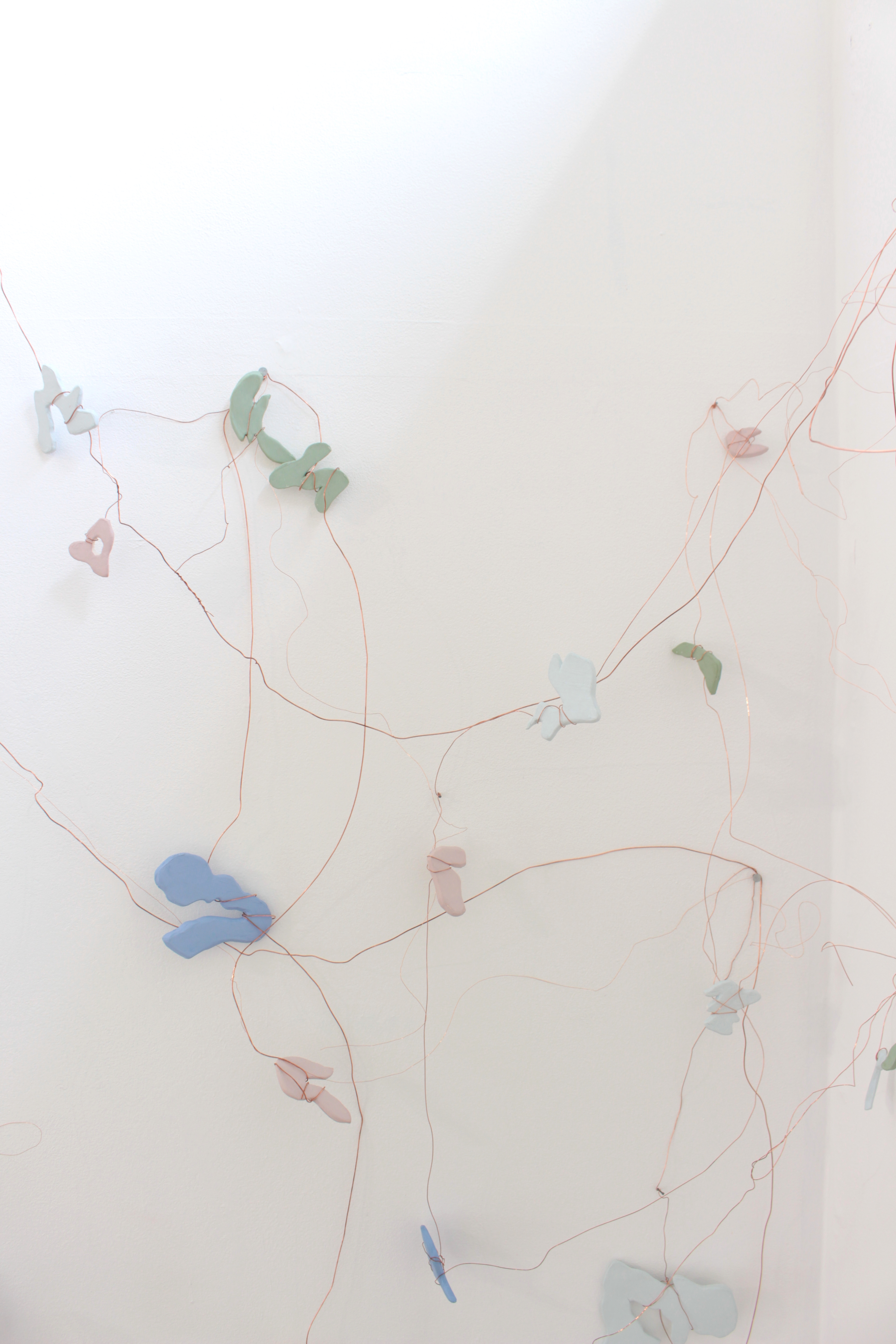 Wire and ceramic sculptural wall hanging: