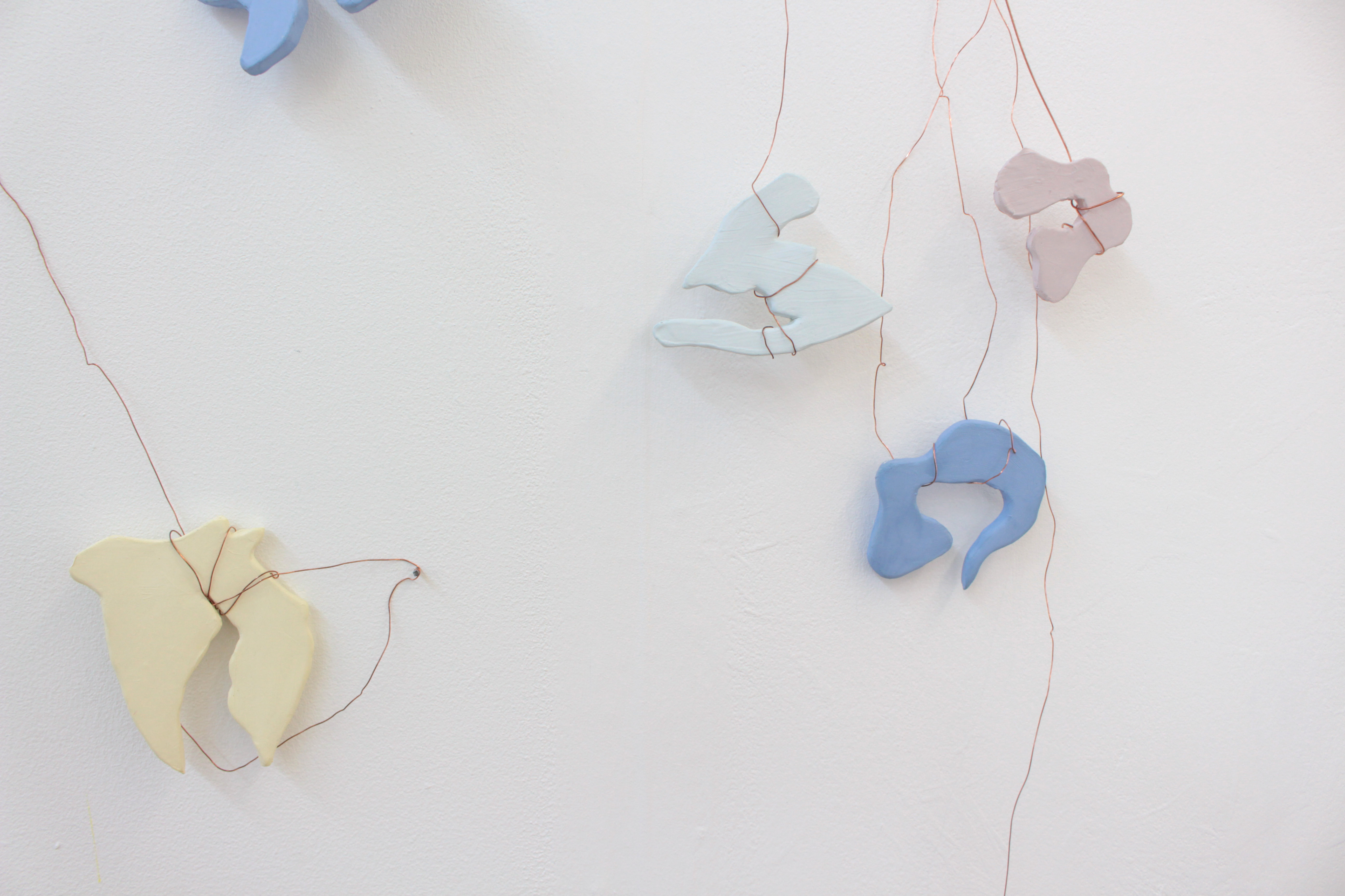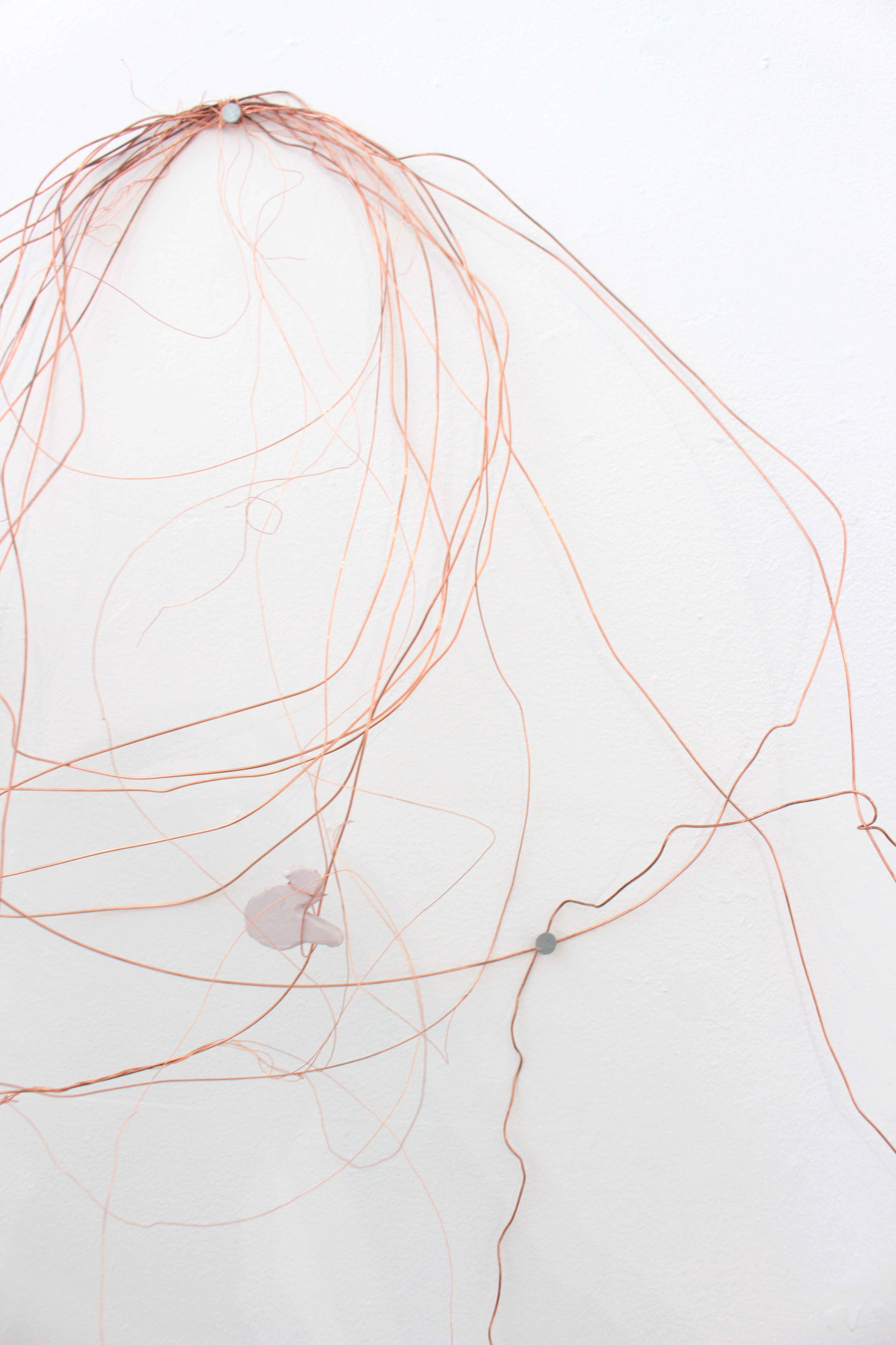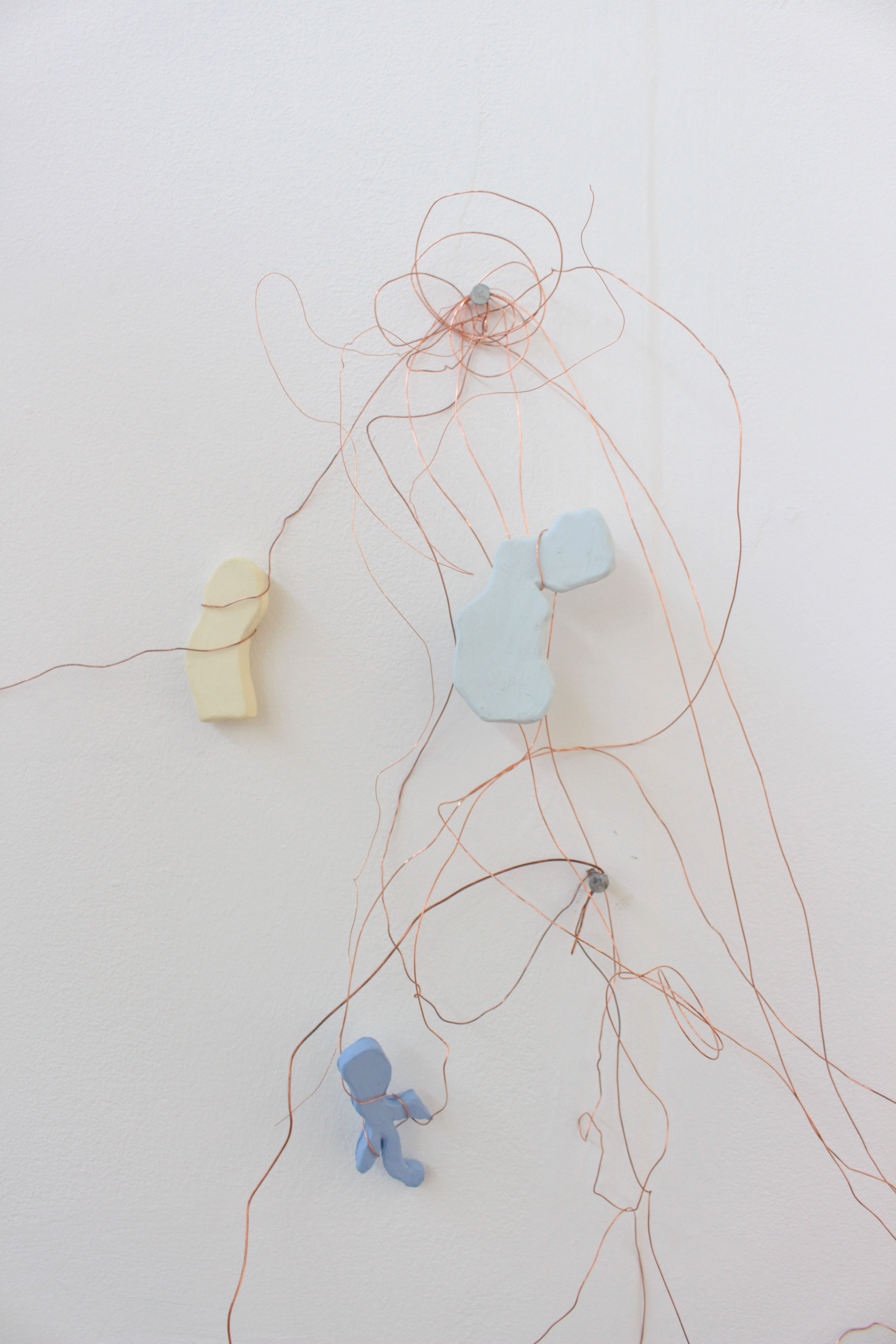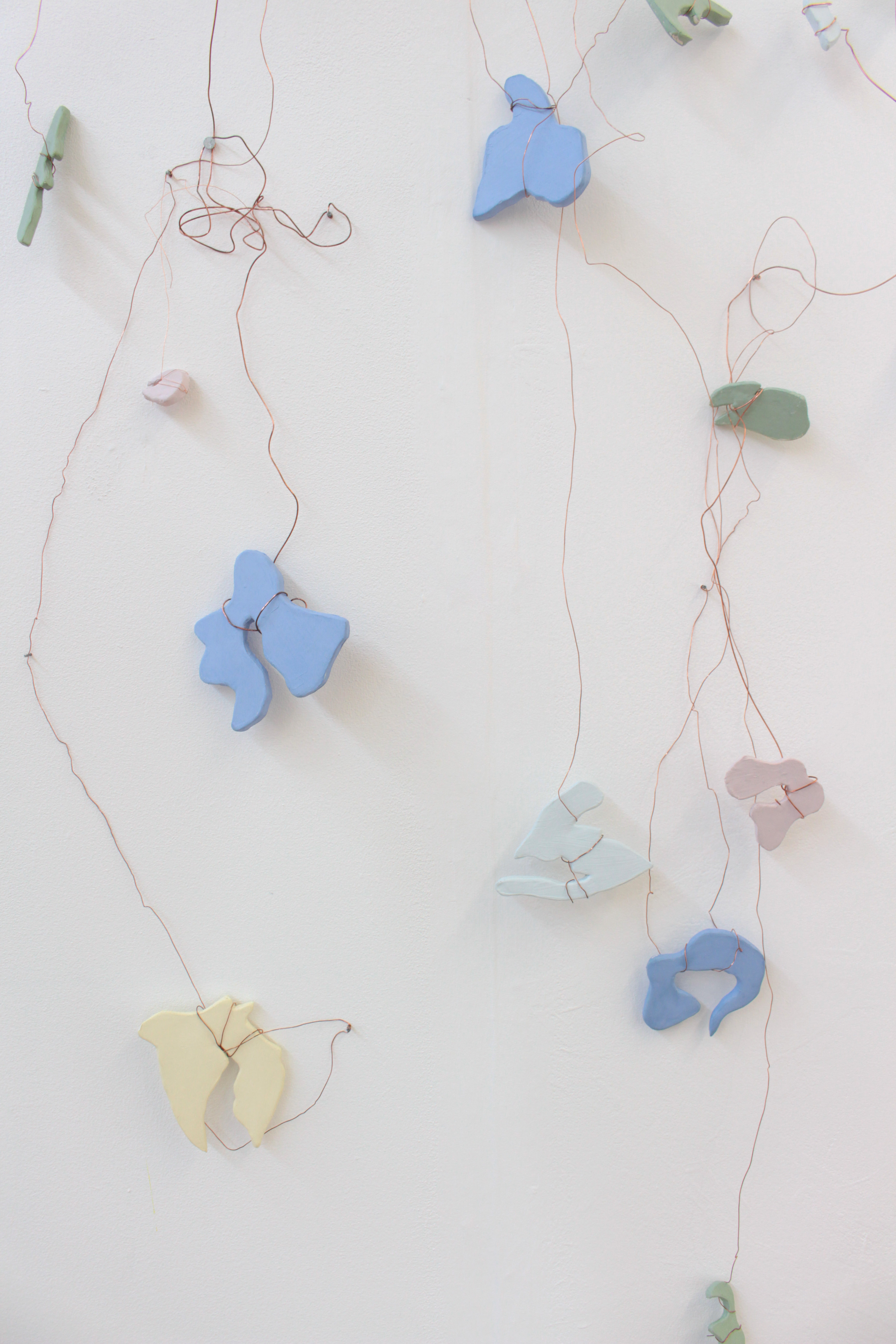 Wire and ceramic sculptural wall hanging: