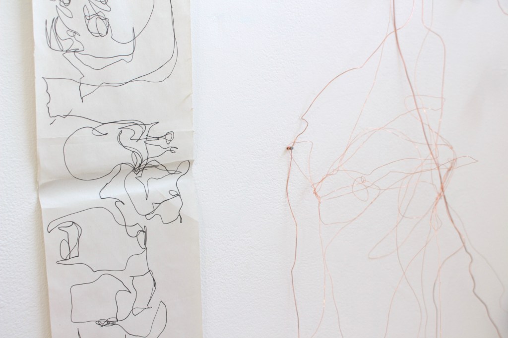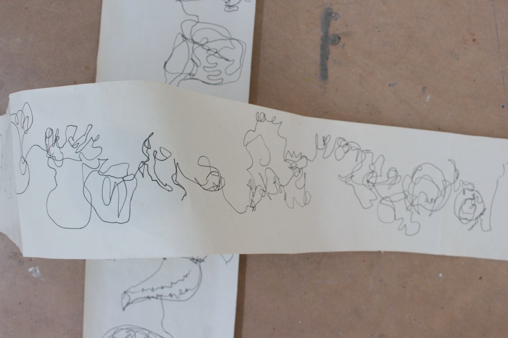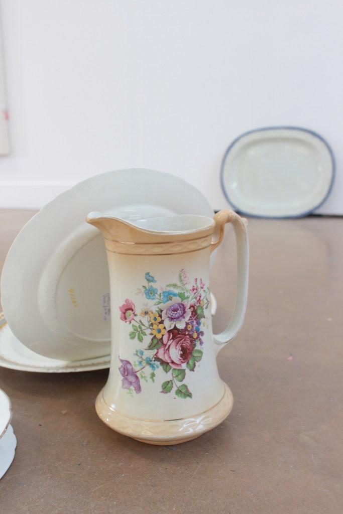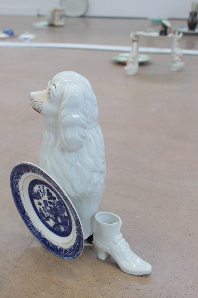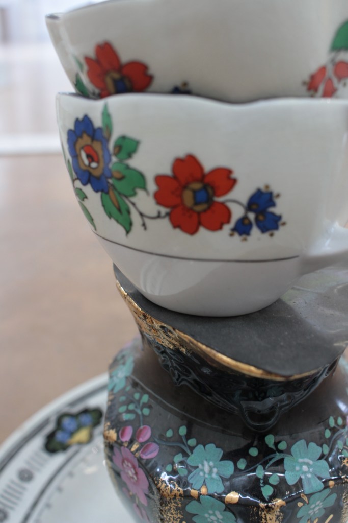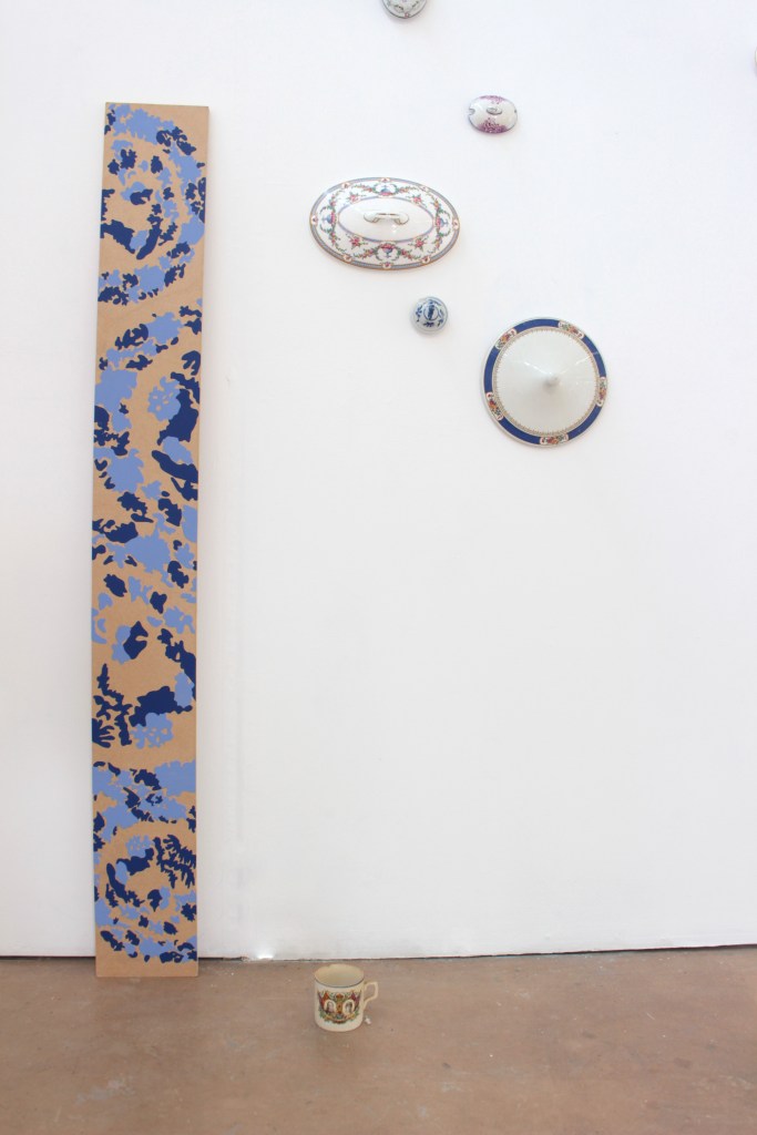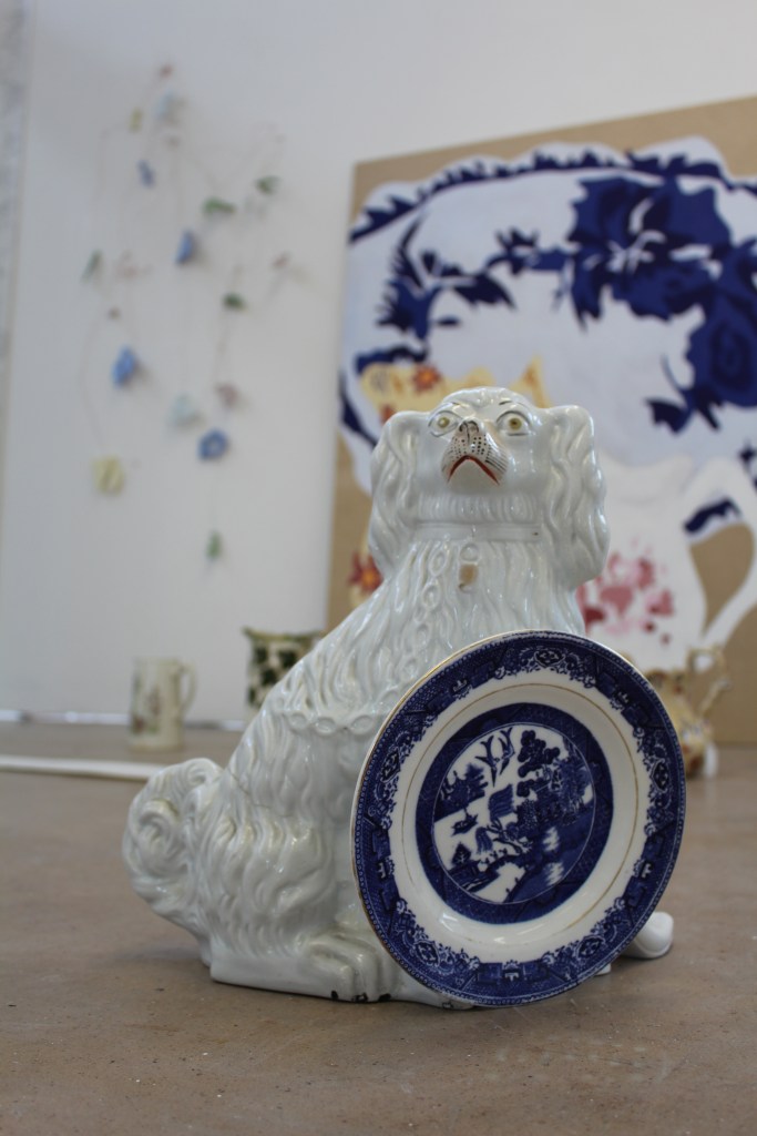 Drawing is always the beginning of my work and from there everything develops, my practice is process lead and through making, I am able to discover its meaning. Through continuous line drawing I am able to disconnect from the object and take my work beyond what I see before me in order to explore it further. In my work I also question the importance of objects. Traditionally, imperfect objects with cracks, chips, stains and breakages, would be considered less valuable, but to me these imperfections add value by revealing their past and characteristics. The concept of displacement plays a roll in my work by challenging the conventional expectations of presentation. Plates discarded on the floor, lids proudly hung on the wall, piles of assembled ‘antiques’ precariously balanced.
