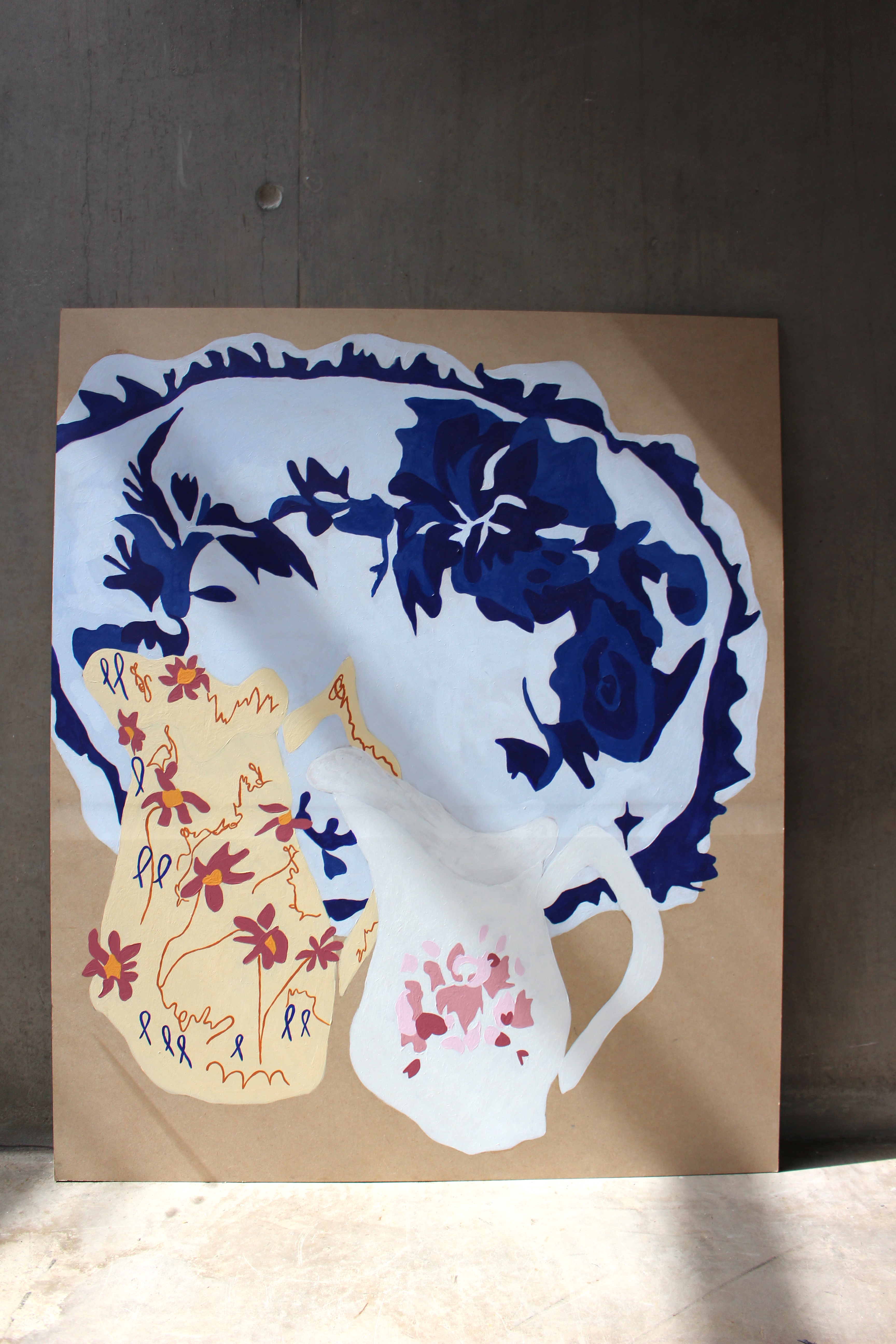 Study of Jugs, 2018 (acrylic on paper mounted onto mdf board)Pair of Jugs & Meat Plate, 2019 (acrylic on mdf board)