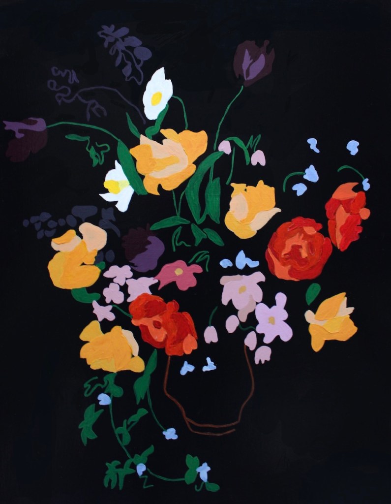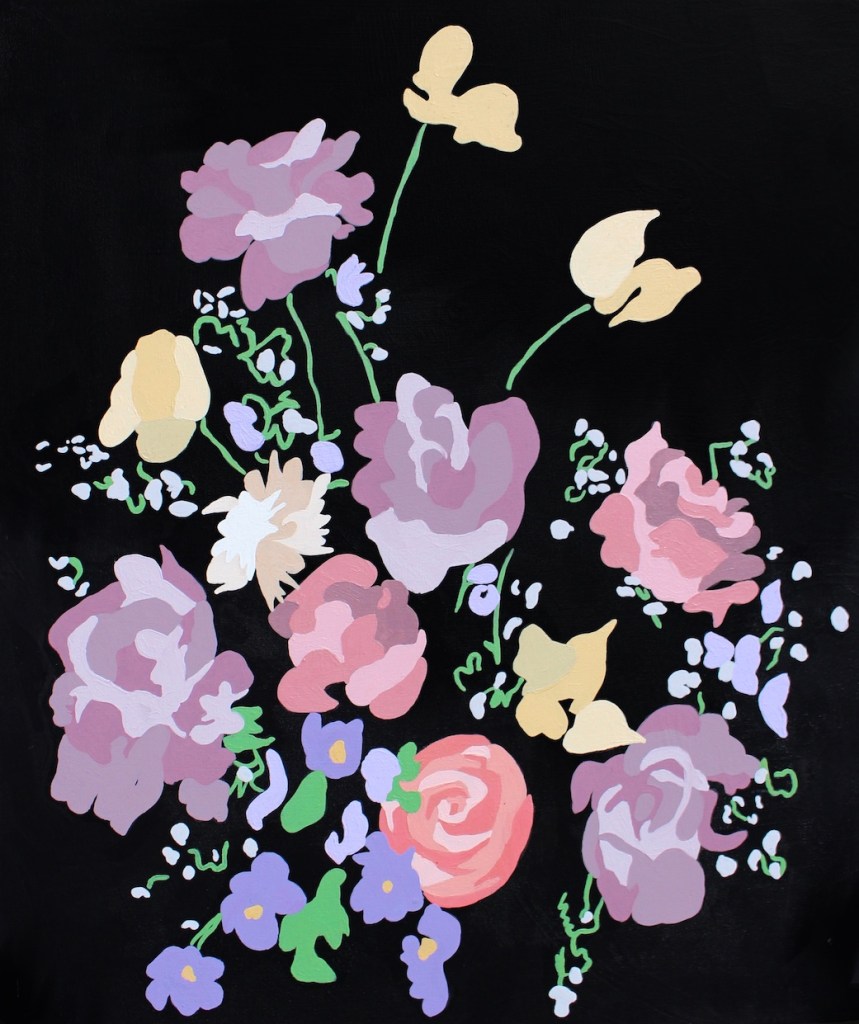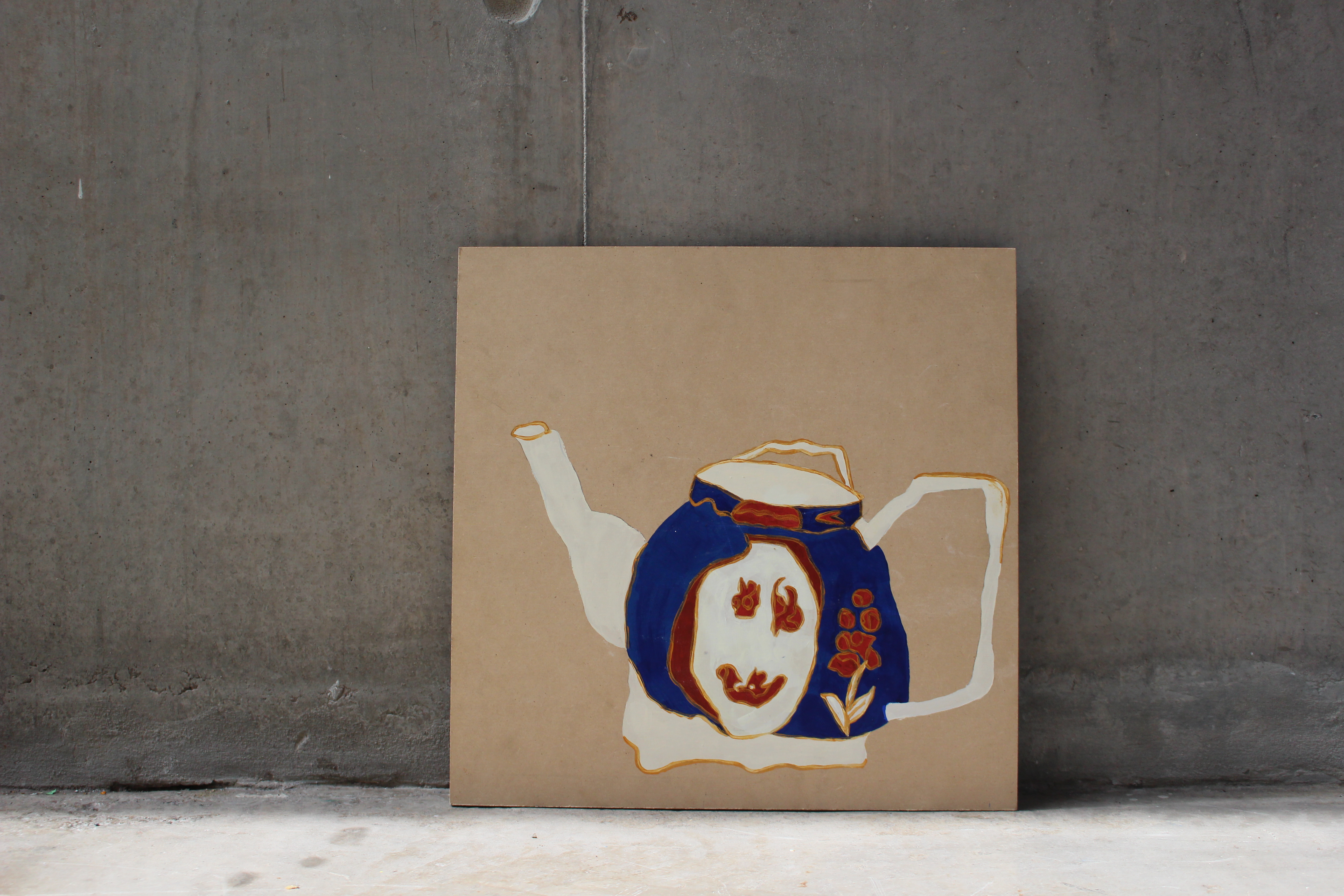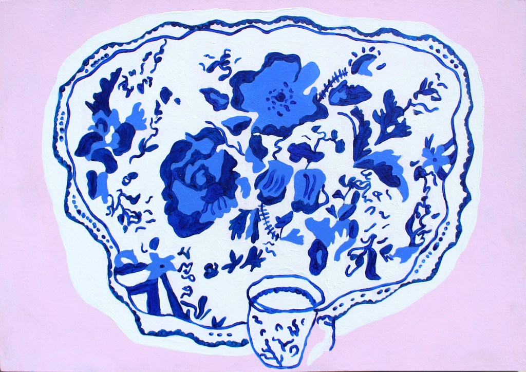 Meat Plate & Little Companion, 2020 (acrylic on mdf board)Gaudy Welsh Tea Pot, 2019 (acrylic on mdf board)Icy Blue Cake Plate, 2019 (acrylic on mdf board)Stacked Plates, 2019 (acrylic on mdf board)Floral Spillage (acrylic on mdf board)Gypsy Still Life, 2020 (acrylic on mdf board with a gloss varnish)